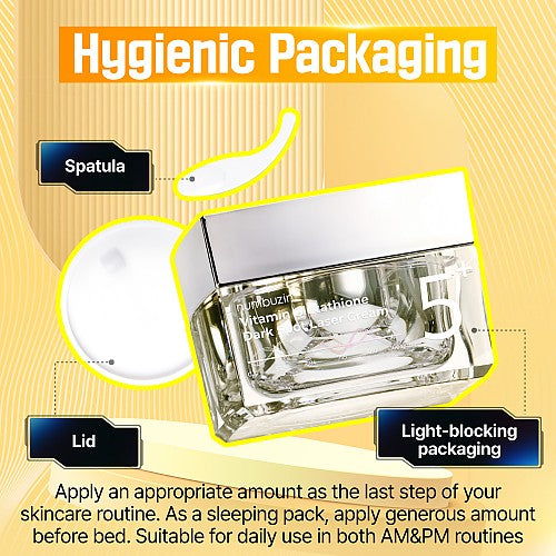 Achieve a radiant, spotless complexion with the Numbuzin No.5 Vitamin Glutathione Dark Spot Laser Cream. This advanced formula targets dark spots, blemishes, and hyperpigmentation while strengthening the skin barrier. Featuring Melase, Glutathione, and L-Cysteine, it inhibits melanin production for brighter, even-toned skin. Enriched with eight growth factors, Ceramide, Panthenol, and Beta-Sitosterol, this cream nourishes and repairs the skin for a luminous glow.