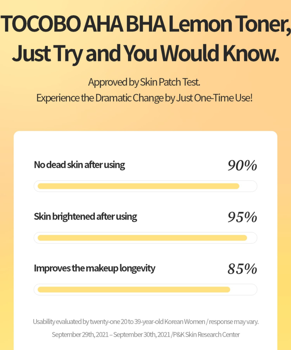 AHA BHA Lemon Facial Toner : The first step to clear skin; A weakly acidic daily keratin toner that prepares dead skin cells and skin texture and improves the complexion to make the skin clear and transparent.